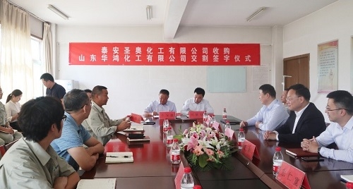 9月6日下昼,,,,圣奥化学科技有限公司(以下简称“圣奥化学”)下属泰安圣奥化工有限公司(以下简称“泰安圣奥”)收购山东华鸿化工有限公司(以下简称“山东华鸿”)股权交割仪式在山东华鸿举行。。。。。。。泰安圣奥总司理闫德刚与山东华鸿董事长于万震划分在股权交割备忘录上签字。。。。。。。自交割完成日起,,,,圣奥化学将通过泰安圣奥持有山东华鸿100%股权。。。。。。。